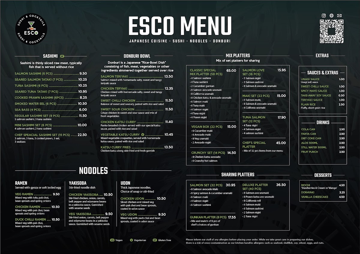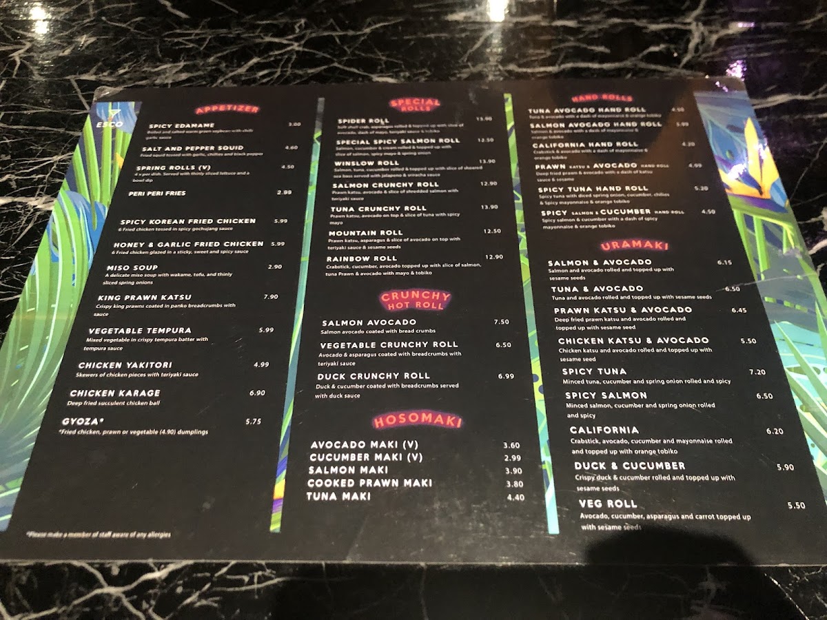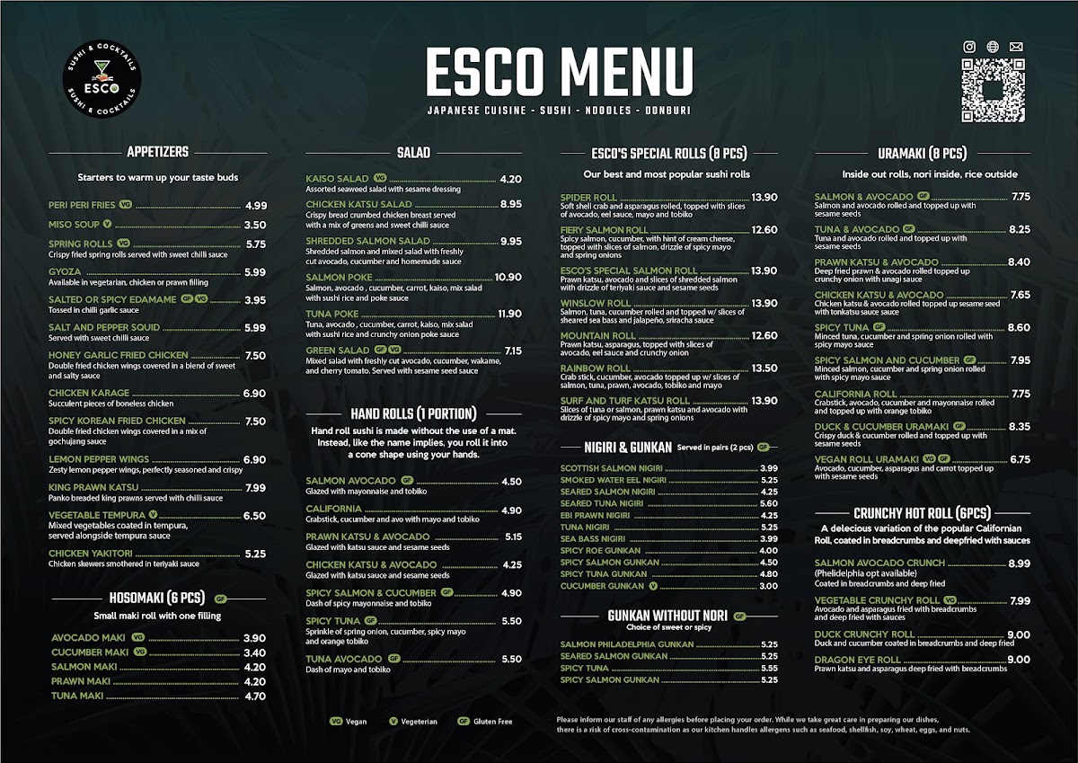 Introducing Esco - Sushi, Noodles & Cocktails, a culinary gem located in Fleet, UK, where fresh ingredients and creative flair collide to deliver an exceptional dining experience. From their vibrant special rolls like the flavorful Spider Roll and Fiery Salmon Roll to the satisfying hand rolls such as the crispy Prawn Katsu & Avocado, every dish is crafted with precision and attention to detail.